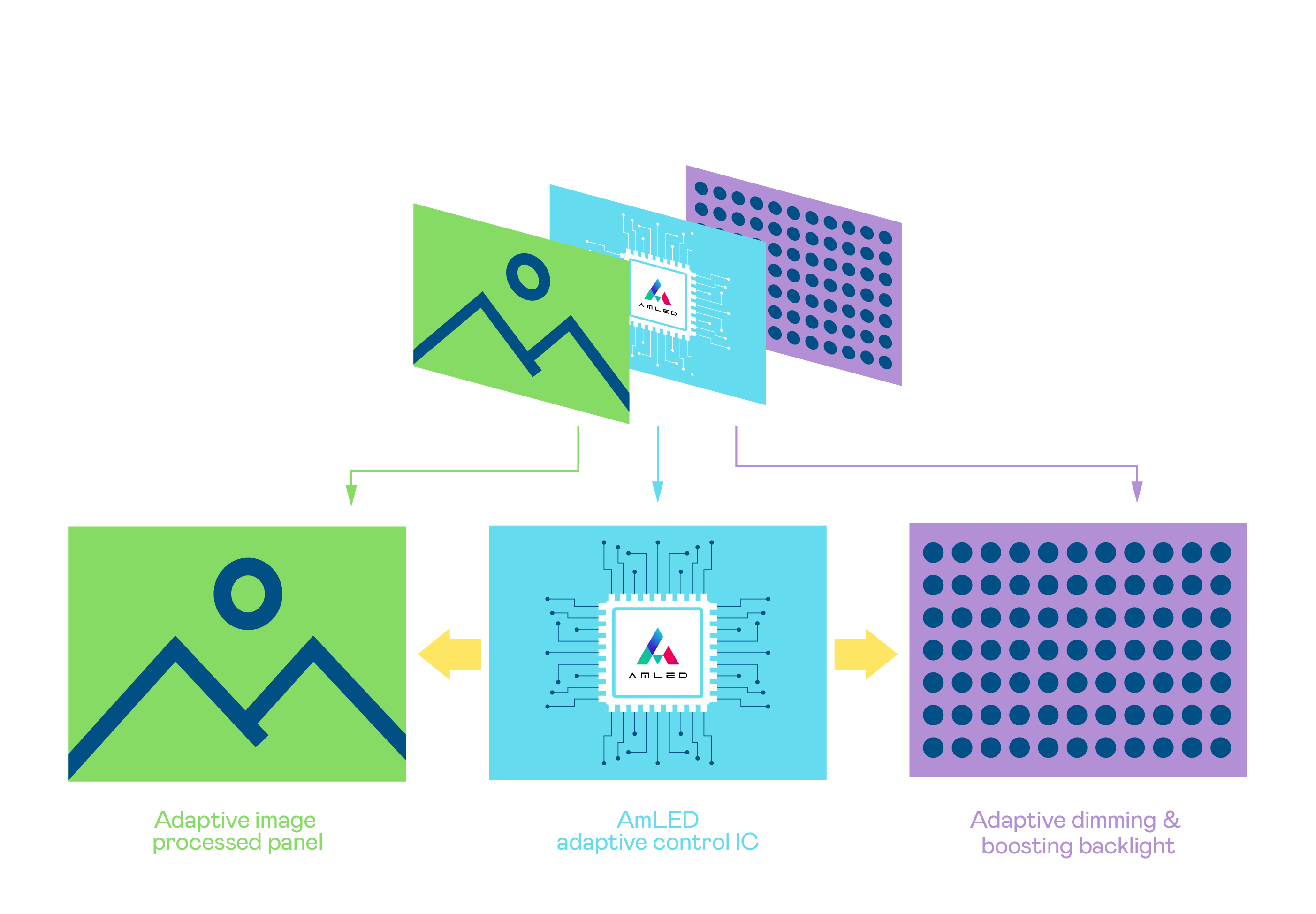 Compared to the organic illuminant used in OLEDs, AmLED's inorganic materials offer better durability without being prone to aging or color deterioration after extended use. In addition, intensive long-term use does not result in image burn-in or decreased brightness, giving it higher durability, higher quality stability, and longer life cycles.